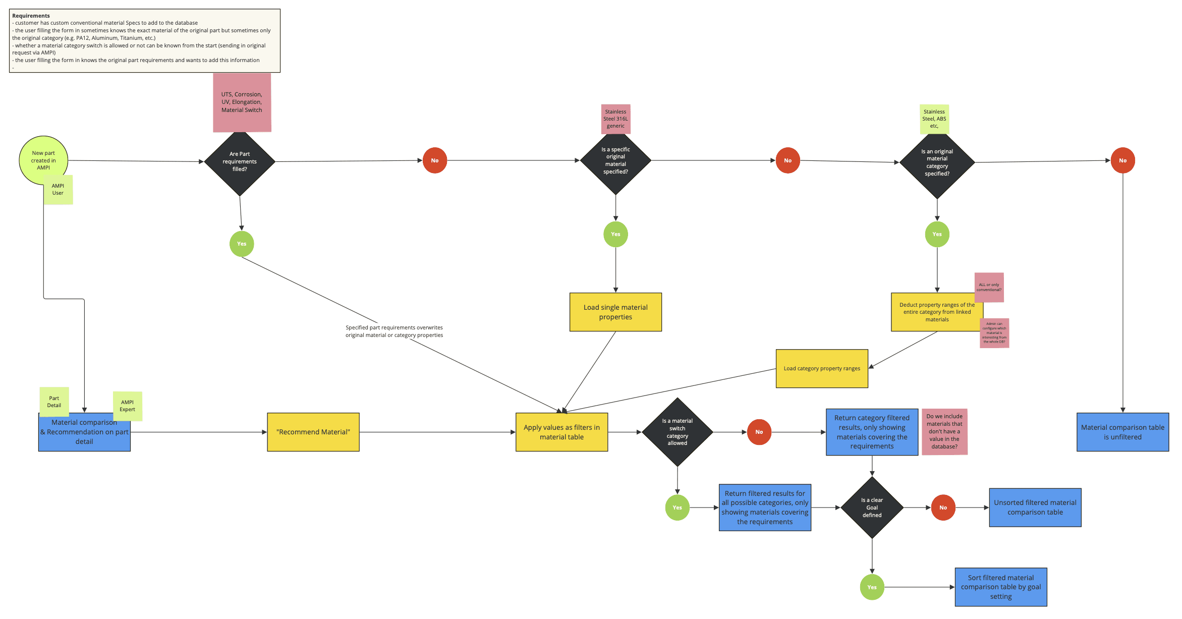 During the process of qualifying and prototyping a part, material and Additive Manufacturing (AM) experts must access a comprehensive industry material database, containing both basic and detailed material properties.